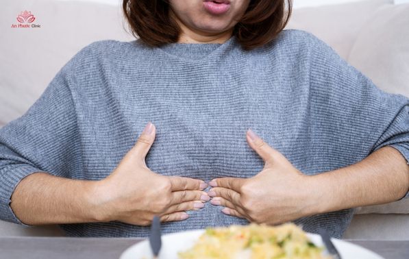 Một số người có thể gặp tình trạng ợ chua, nóng rát ngực do acid dịch vị trào ngược lên thực quản. Triệu chứng này thường nghiêm trọng hơn khi nằm xuống hoặc sau khi ăn đồ nhiều gia vị.